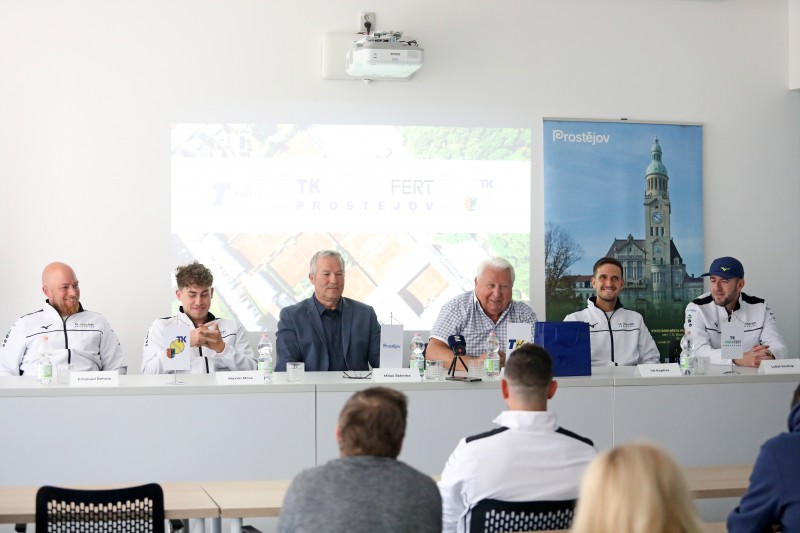 Tiskové konference se kromě samotných hráčů a jejich trenérů zúčastnili také šéf prostějovského tenisu Miroslav Černošek a náměstek primátora statutárního města Prostějova Miloš Sklenka.